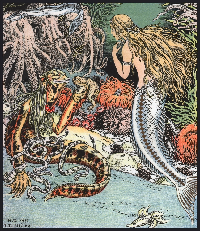 Рис. 2. И. Билибин. Встреча Русалочки и морской ведьмы.