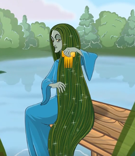 С середины 2010-х годов в облике Су анасы чаще начинаются проявляться зооморфные черты (плавники, чешуя и пр.). Чаще стали изображать дух воды в виде русалочки, что особенно характерно для произведений, ориентированных на детскую и молодежную аудиторию. Например, подобный облик Су анасы можно встретить в мультфильме «Вәли» 2017 года (реж А. Оразов) (рис. 24) и в иллюстрациях И. Афанасьева к книге «Легенды Туган-Батыра» 2022 года [Хаким, 2022].