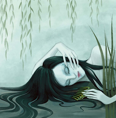 В произведениях Г. Рахманкуловой (живописная картина «Су анасы», конец XX в.), Р. Латыповой-Ивановой (картина в смешанной технике «Су анасы» 2000 г.), Л. Мустафиной-Хазиевой («Су анасы» на шелке в технике холодного батика 2006 г.), в иллюстрациях С. Ибрагимовой [Тукай, 2011], Н. Нечаевой [Тукай, 2016] (рис. 21) Су анасы предстает как девушка с зелеными волосами, украшенными водорослями и водяными лилиями, при этом в изображении присутствует золотой гребень.